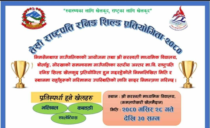 गोरखाको भीमसेनथापा गाँउपालिकामा आजदेखी तेस्रो राष्ट्रपति रनिङ शिल्ड प्रतियोगिता सुरु